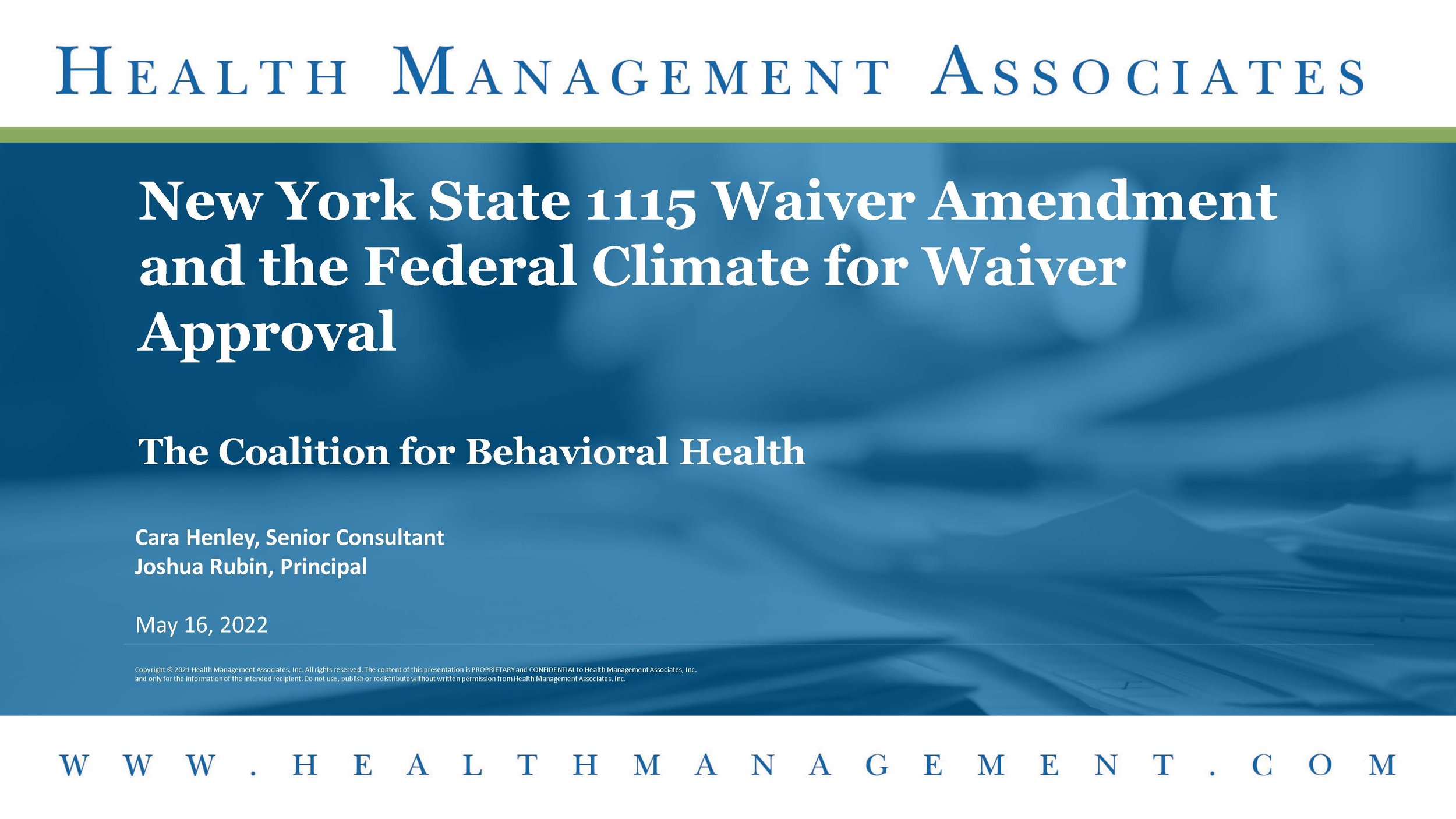 We were excited to host a presentation from HMA’s Cara Henley and Josh Rubin as they discuss the recently published proposed 1115 waiver amendment request Strategic Health Equity Reform Payment Arrangements (SHERPA). This proposed $13.5 billion waiver would be the biggest healthcare transformation initiative in New York since DSRIP. Cara and Josh will discuss what’s in the proposal, the process of turning the proposal into a new set of Medicaid rules for New York, and the implications of the proposal for community behavioral health providers.