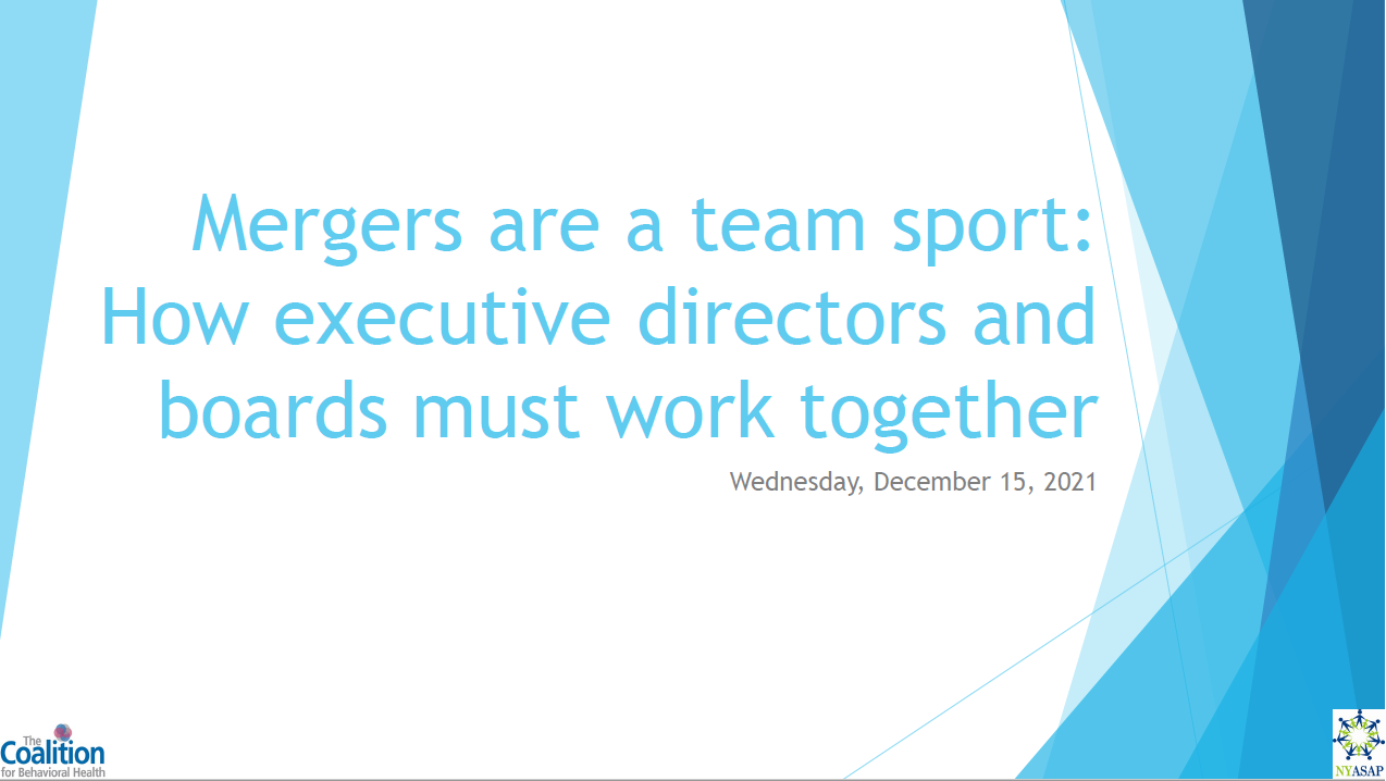 As provider organizations consider strategies for success and sustainability, one option is some type of merger, acquisition, or other collaboration. In this session, Monica Oss, Chief Executive Officer of OPEN MINDS, walked through both the strategic issues to consider and a best practice process for designing a new relationship with another organization.